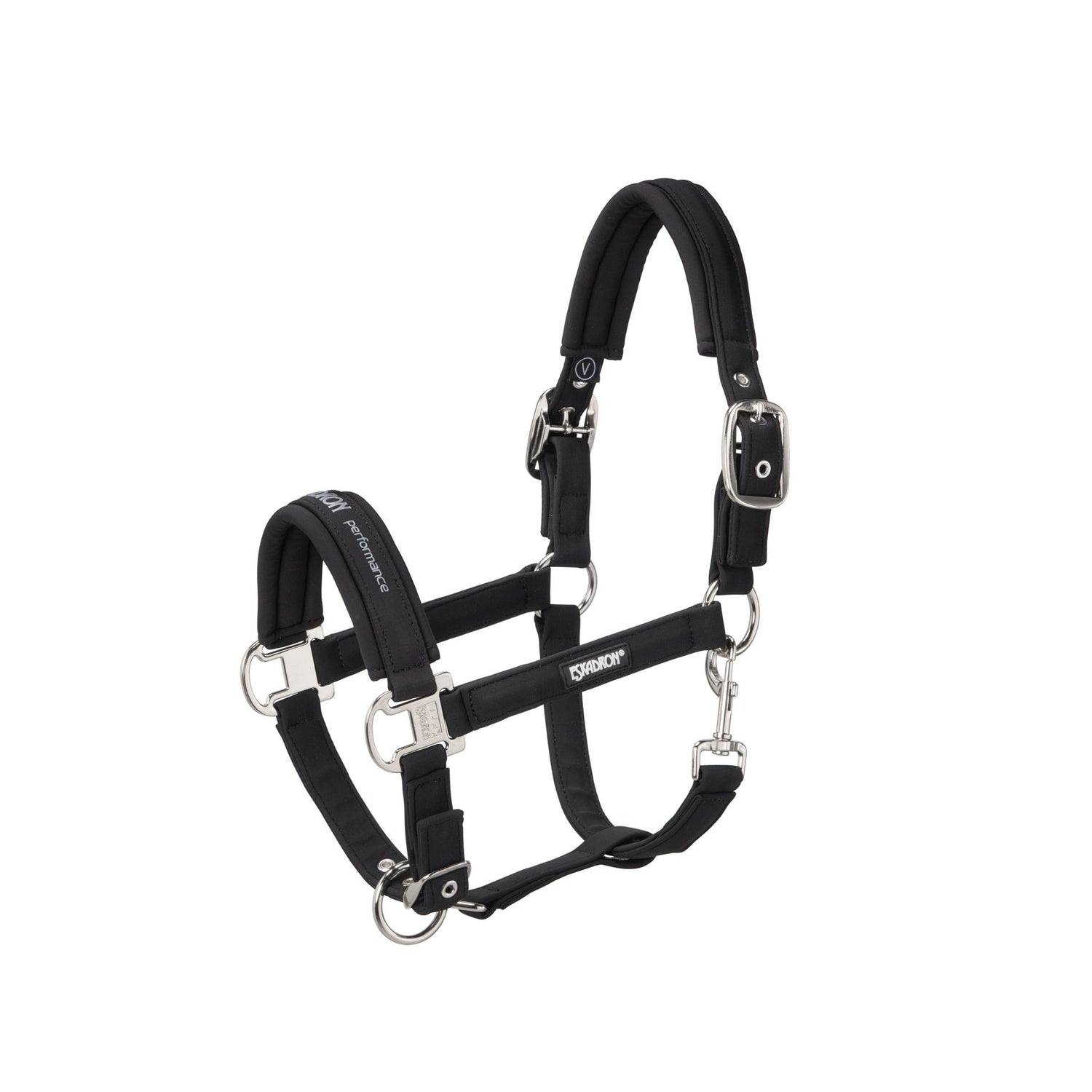 The Eskadron Double Pin Head Collar is a high-quality headcollar designed for durability and comfort during various equestrian activities. With a high-quality softshell surface, this headcollar combines style with durability. It also features tear-proof webbing inside to ensure long-lasting use. Your horse's comfort is prioritised with the soft and easy-care softshell padding.