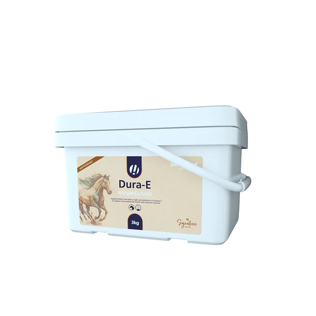 Hestevard Dura-E is an effective Vitamin E supplement that provides antioxidant support. This premium formula is designed for horses with limited access to grassy pastures, as it helps combat harmful free radicals and promotes healthy liver function, muscular and neurological activity, and is ideal for performance horses. With its high concentration, it only requires a low daily feed rate. Perfect for foals, stallions, and pregnant mares. Safe for competitive use (FEI approved).