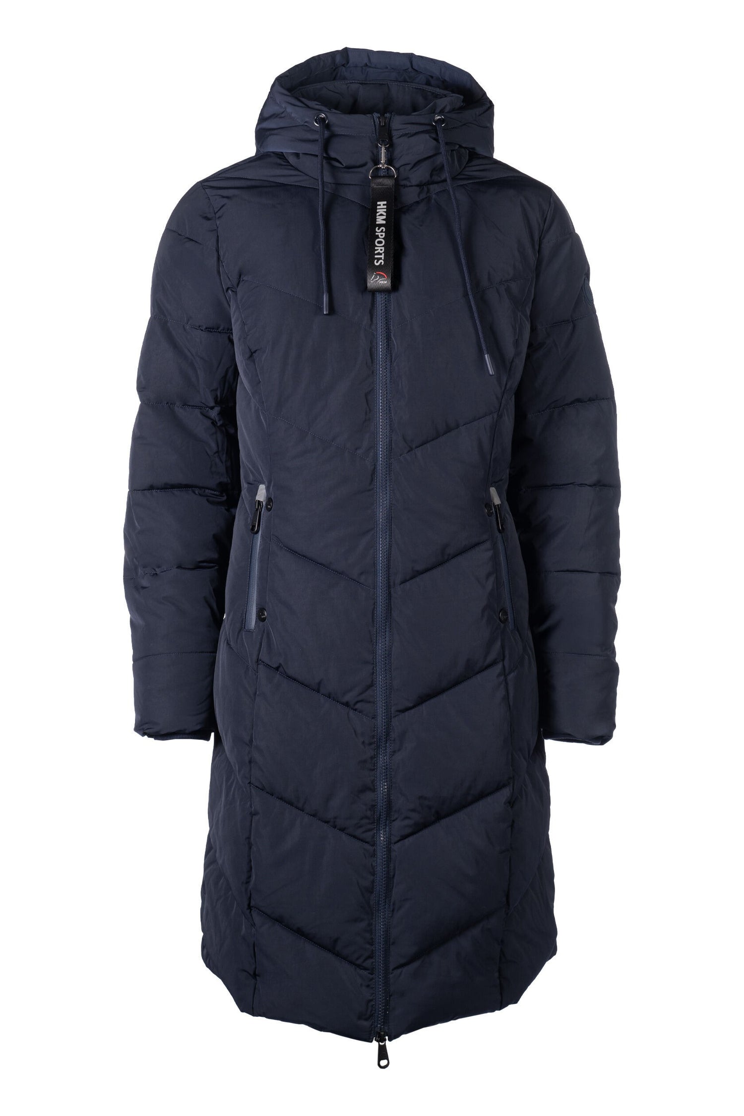 This jacket is highly insulated, making it the perfect choice for cold days. The modern quilting combined with soft cotton wadding not only provides extra warmth but also gives the jacket a stylish and contemporary look. With a practical two-way zip, it is especially well-suited for riding. Designed to withstand the elements, the jacket is water-repellent, windproof, and includes a discreet back vent for greater freedom of movement. It features a fixed hood with a large, modern collar, finished with a subtle rubberised detail for a refined touch.