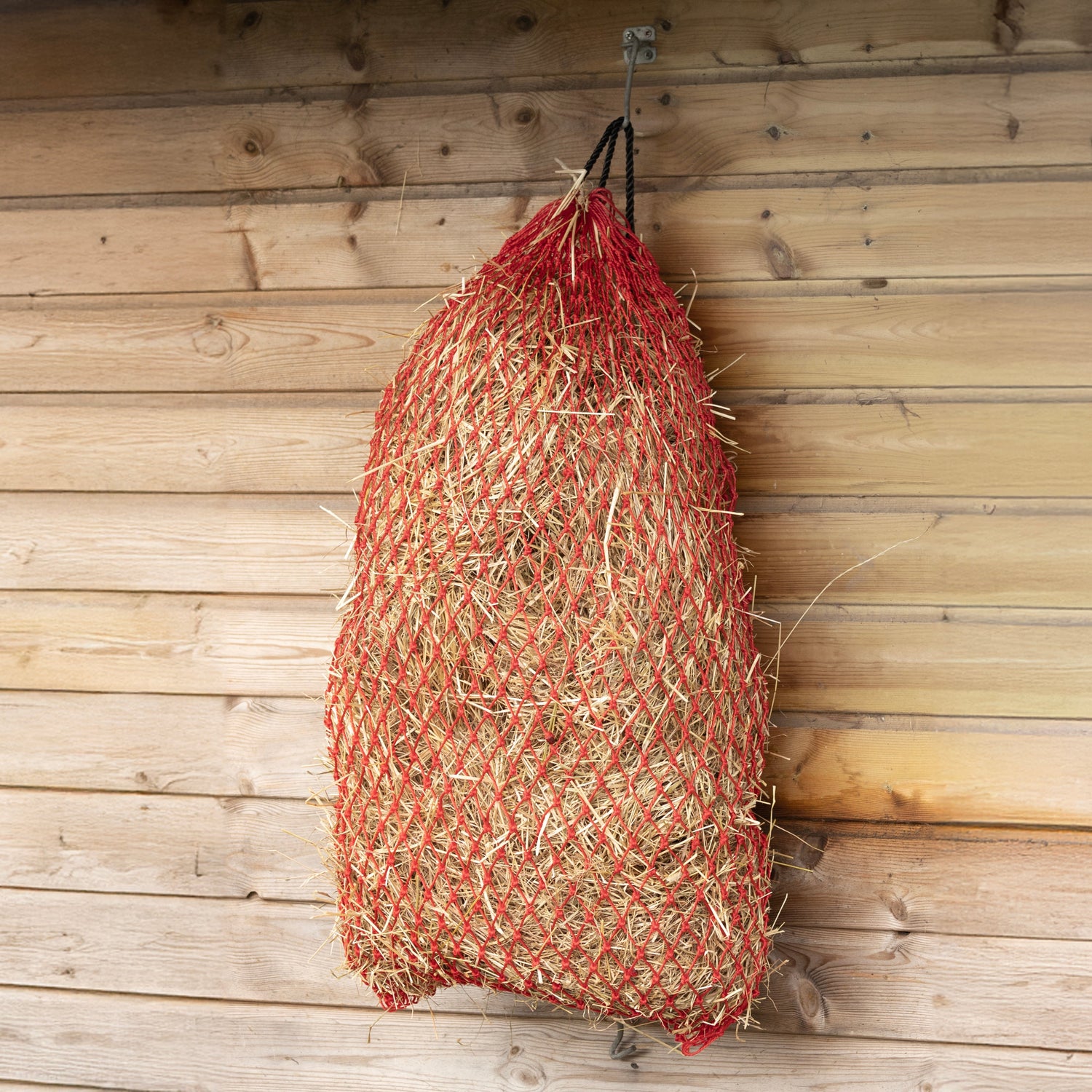 The Slow Flow Lock-Knot Haynet is perfect for greedy feeders, those on a diet or horses that need their ad lib forage controlled. Individually crafted with small, fixed holes to ensure a consistent hole size, slow hay consumption and trickle feed your horse or pony, ensuring better digestion and less waste on the floor. Durable and practical, this haynet will hold approximately 7kg of dry hay. 3cm holes.