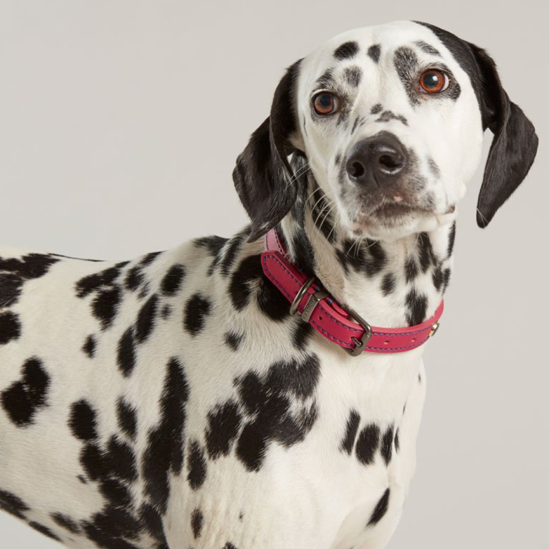 Crafted from built-to-last leather this comfortable and durable dog collar is available in four sizes with matching lead and finished with Joules decorative embellishments.