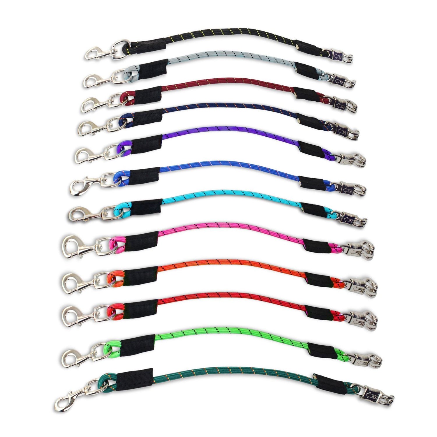 The KM Elite Bungee Tie is a top-quality trailer tie that is perfect for horse owners who are looking for a reliable and durable way to keep their horses secure. Made from 1/2" bungee cord, these 23" ties are available in a range of vibrant colors and are fitted with a quick-release panic snap on one end and a trigger clip on the other.