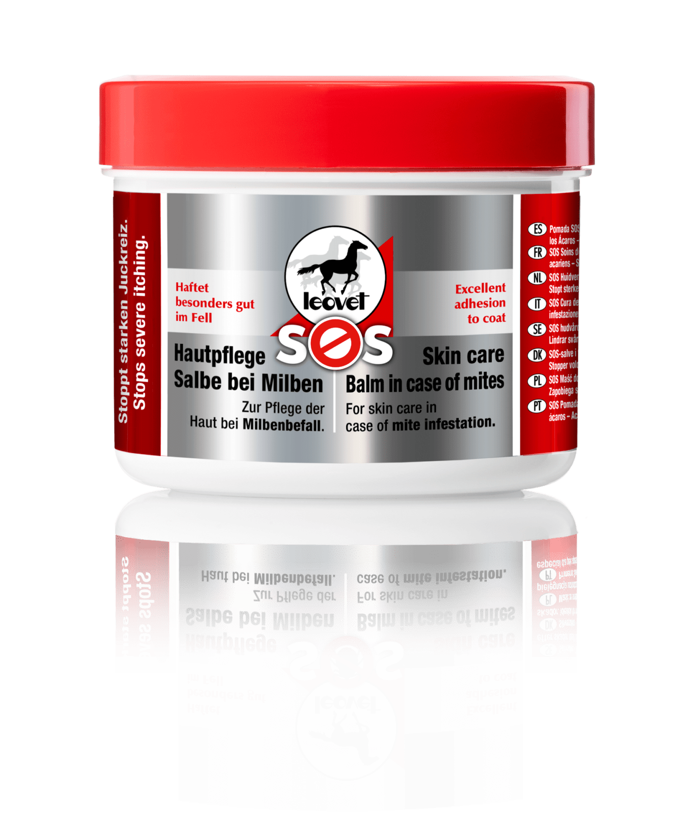 For nourishing care of skin stressed by mites or parasites infestation. Supports skin regeneration in cases of dandruff, hair loss and chafing. Stops severe itching, prevents chafing and scratching. Excellent adhesion to coat. Hair loss resulting from mite infestation is stopped, coat begins to grow again after just a few days.