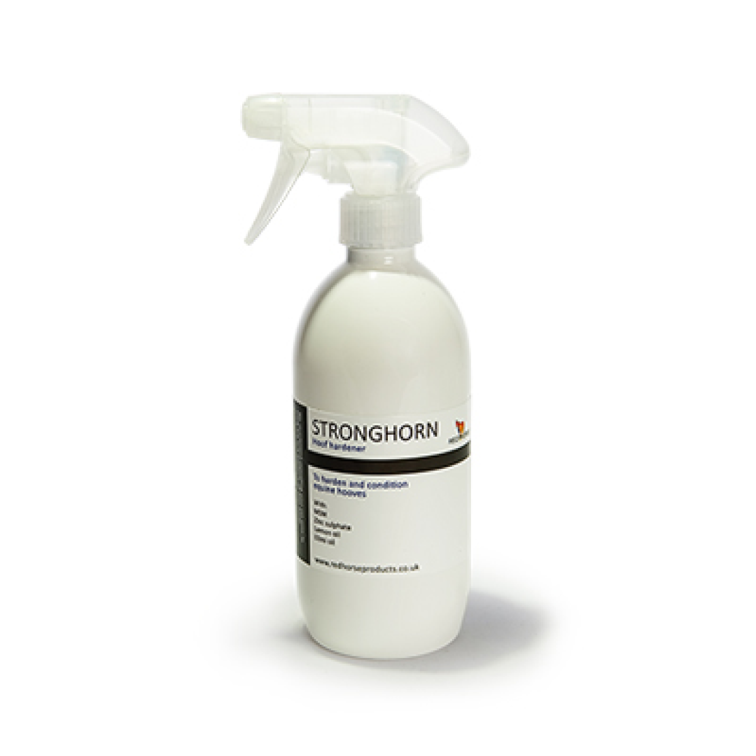 Stronghorn spray nourishes and toughens horn tissue and is a powerful hoof disinfectant.