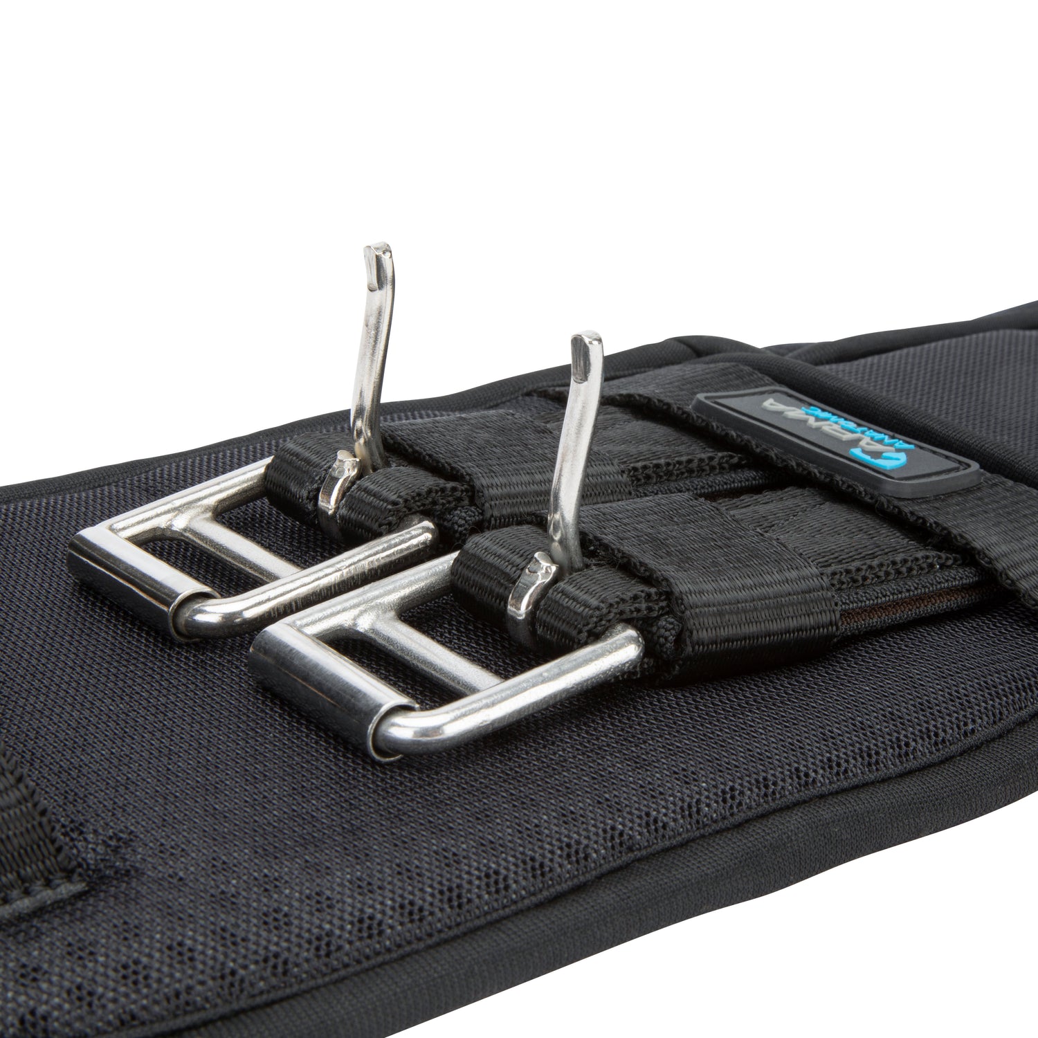 The outer girth features a 3D aerated surface to help bring air movement through to the underlayers, reducing moisture and heat build up. Contoured shaping supports the horse whilst allowing space behind the elbows for greater freedom of movement. Double layer pressure alleviating elastic inserts at both ends with curved self-closing loop bar roller buckles at one end, standard roller buckles at the other. A centre D-ring for martingale and breastplate attachment. Stainless steel fittings for long lasting performance.
