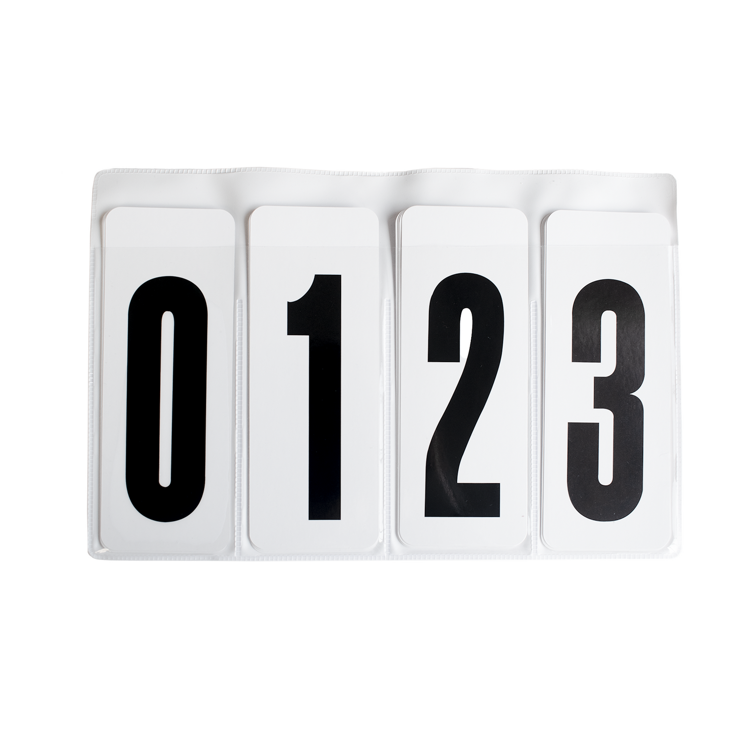The useful insert card units are used with the double sided Aubrion number bib (Adult size) to clearly show competitor's competition number. Both insert cards have four pockets to create four figure number combinations, made using the supplied number cards.