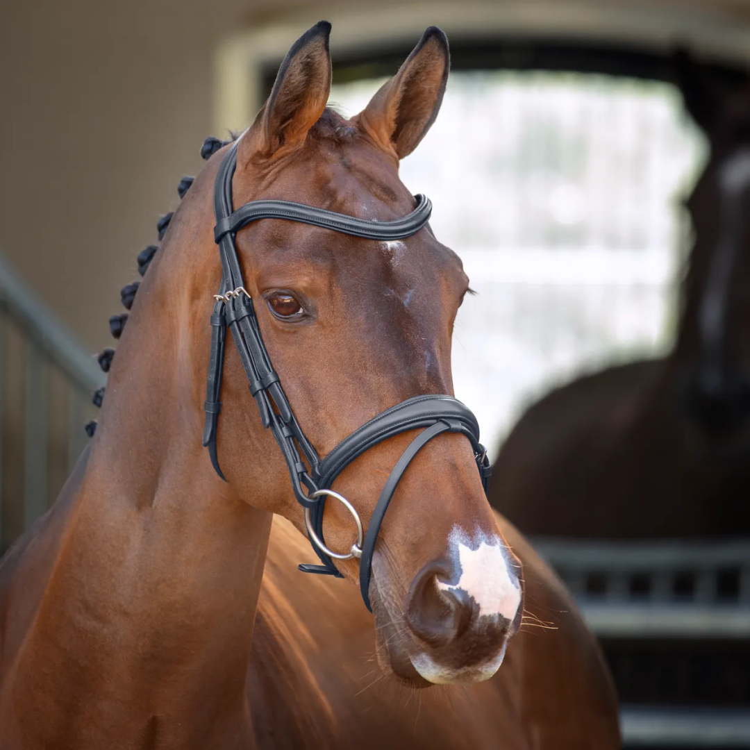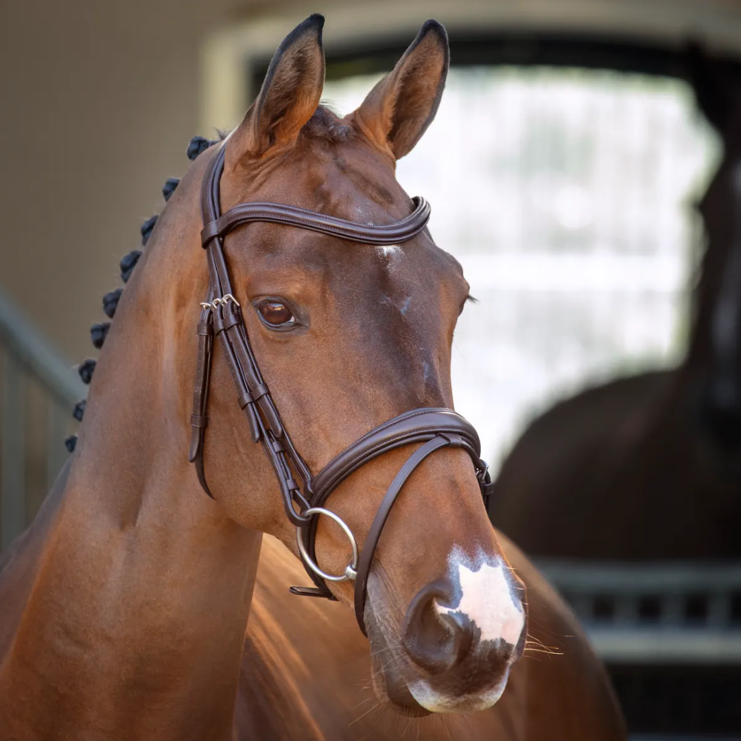 Smart and refined, the Shires LUSSO flash bridle features raised detail at the brow and noseband for elegance. The ergonomic fit pressure alleviating deeper noseband tapers to the sides and has an appealing domed profile. Deep cushioned leather padding on the underside of the nose, brow and head adds further relief. A graceful curved shape to the browband adds refinement. Tech details: FreedomFit headpiece designed to relieve pressure, the 3-part form fitting crown has an airflow poll gap and cutaway freedom-ear profile.