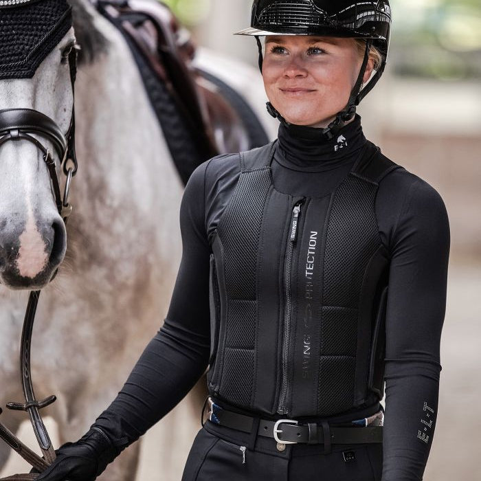 SWING back protectors protect your body without affecting your enjoyment of riding. The use of high tech materials ensures maximum freedom of movement.