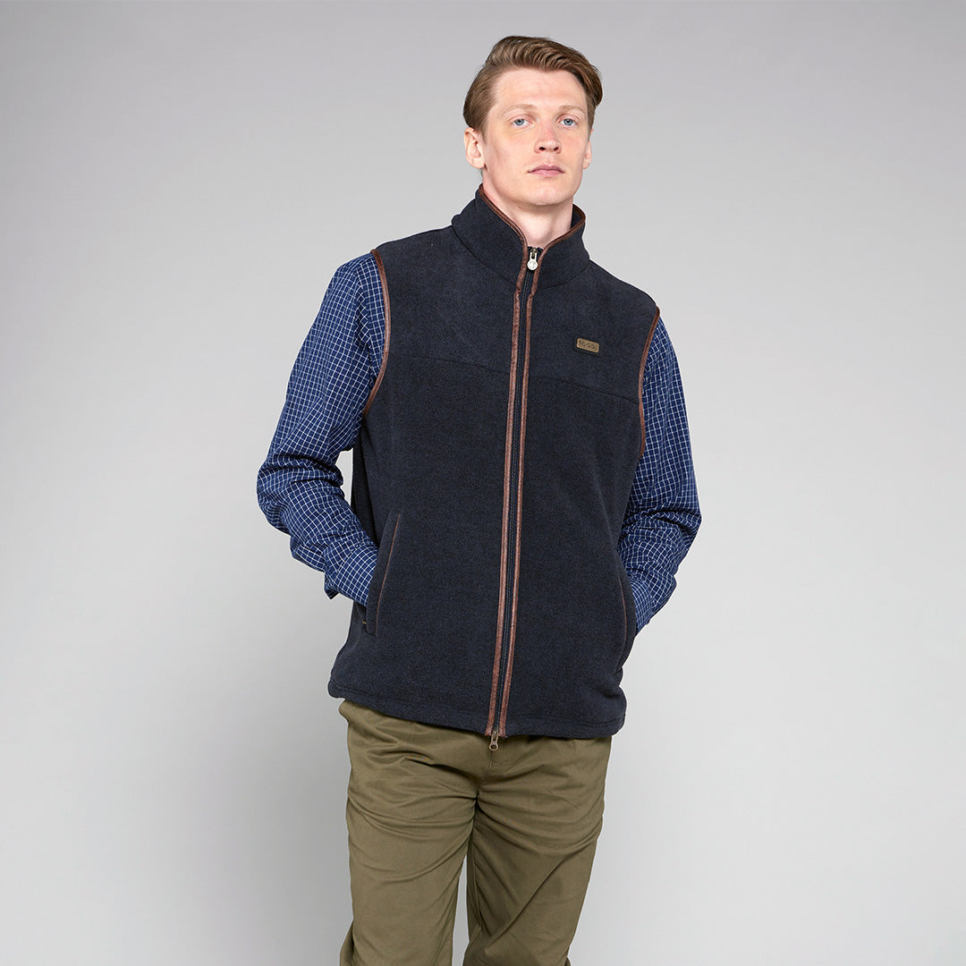 The Tudor Fleece Gilet is a classic country zip-through style, designed with a timeless silhouette enhanced by faux leather binding and practical zip pockets. The super-soft fleece fabric is crafted from two different colour yarns, creating a luxurious melange effect. Finished with a branded metallic badge and antique brass zip pulls, this piece combines comfort, function, and refined detail.
