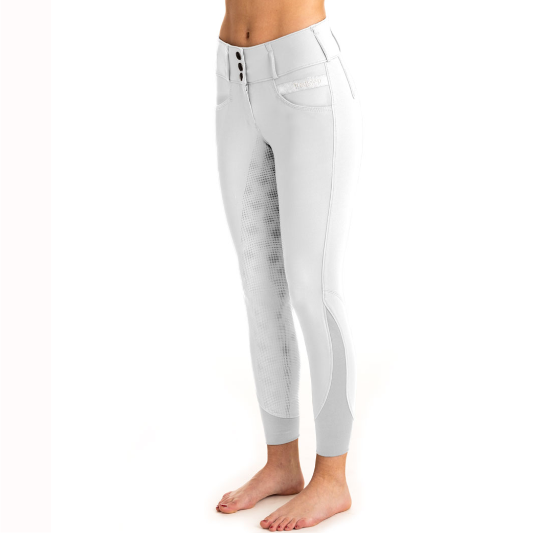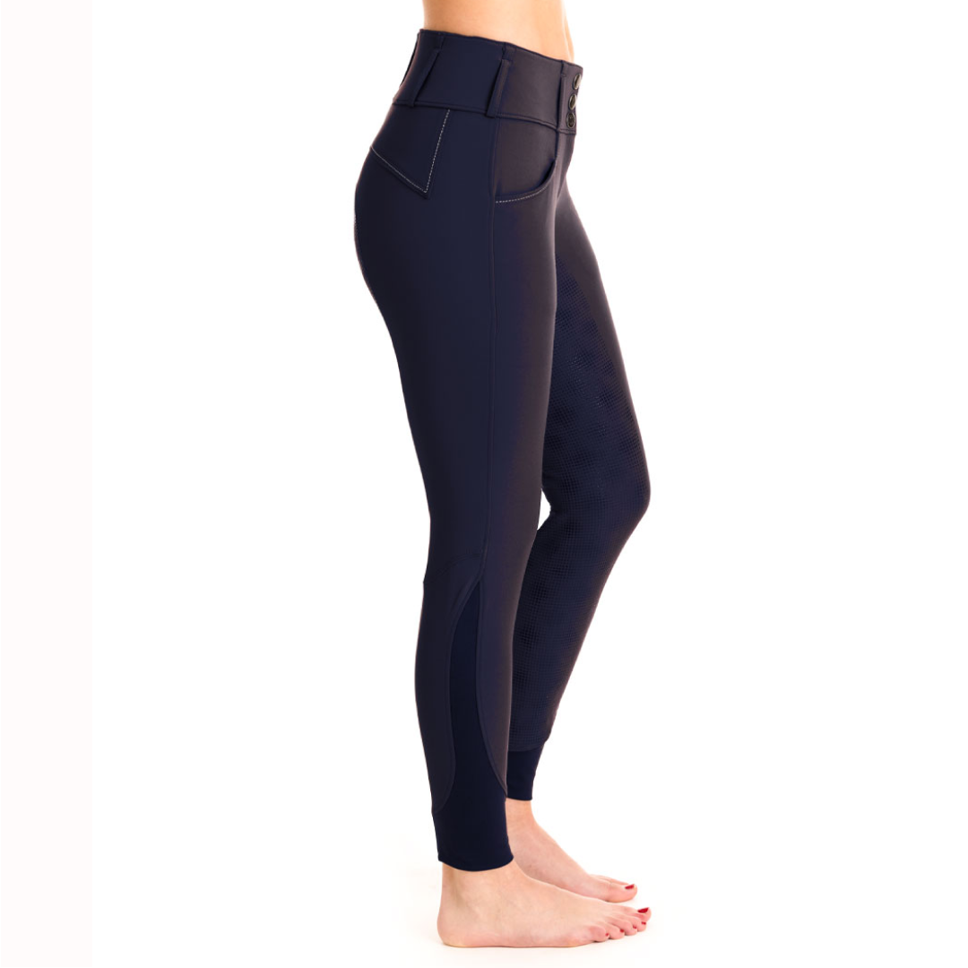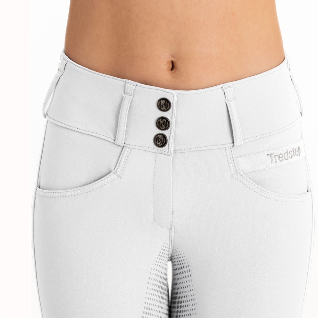 The Tredstep definition waistband improves the definition of the waist, which is noticeably more flattering to the rider. It is designed using circular pattern techniques which results in a smooth curved fit through the riders lower back eliminating annoying gaping and belt pulling.