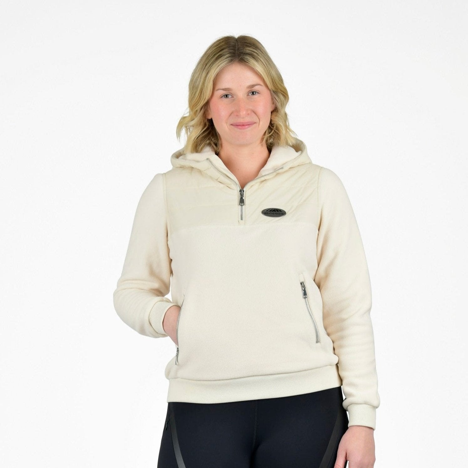 Keep warm with the WeatherBeeta Tampa Technical Pullover. This hybrid hooded pullover features quilted wadding fill panels on the front chest and upper back for extra warmth and style. With a front quarter zip for easy on/off, and two front side pockets with zip closure give added style as well as being perfect for keeping your hands warm. This long sleeve fleece top features cuffs with thumb holes to protect your wrists without the bulk of gloves. Available in Ladies XS - XL.